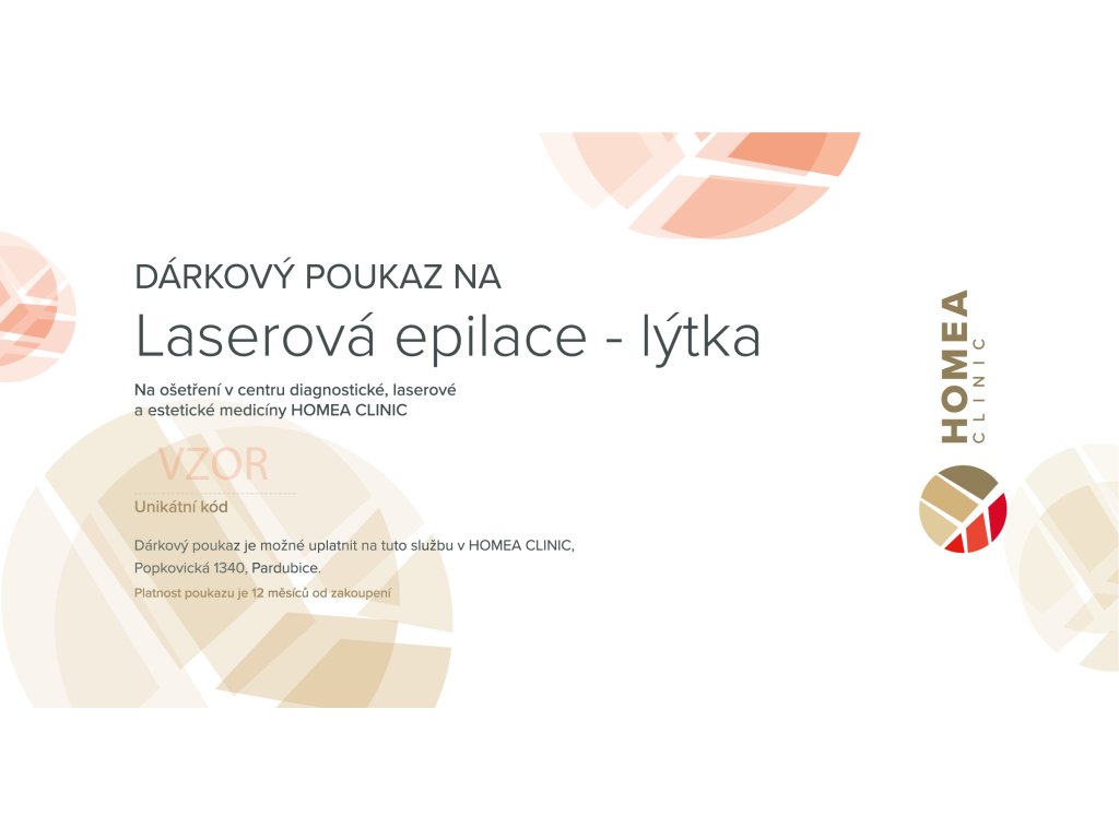Poukaz lze uplatnit pouze na "laserovou epilaci lýtek" v HOMEA CLINIC, Popkovická 1340, 530 06 Pardubice.